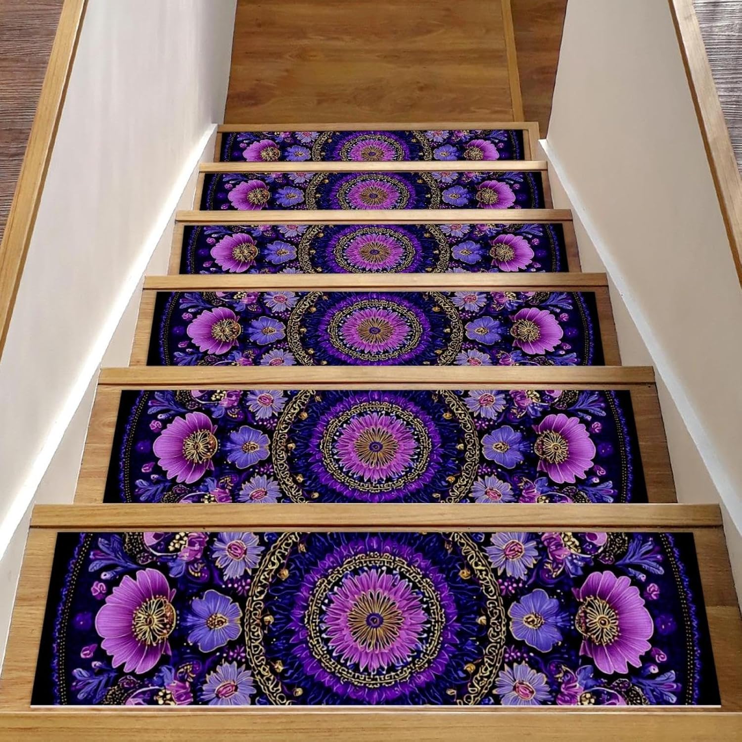 ・Size: 30 x 8 in / 76 x 20 cm, 5 mm thickness. ・Material: The polyester surface absorbs water, preventing stains on the floor. The TPE back is non-slip and water-resistant, preventing damage to the stairs. ・Package Contains: 15 pieces of 30x8in (about 76x20cm) stair mats, 5mm thick. Suitable for most needs. Each stairway treads rugs is individually wrapped. ・Easy to Clean: Vacuum, hand wash or machine wash. The stair runners for wooden steps can be machine washed, preferably hand washed, or vacuumed. Do not use bleach or tumble dry at high temperatures, drying at appropriate low temperatures will give you a comfortable texture. ・Noise Reduction of Stair Treads: By adding our stair runner, not only can you protect your floors, but you can also significantly diminish the noise caused by walking up and down the stairs. Stair rugs can decorate your stairs, create a warm home atmosphere, you can enjoy a peaceful and quiet home environment without disturbances. ・Easy to Remove Adhesive Backing: When you want to replace the stair treads non slip, the adhesive backing easily removes without leaving residue on the steps. ・Holiday Design: Stair carpet treads are designed specifically for Christmas,Halloween, Thanksgiving Day features classic festival elements and vivid printing styles,creating beautiful and stunning visual effects for you. This holiday themed stair treads can easily help you add a strong festive atmosphere, bringing charming and exquisite holiday decorations.