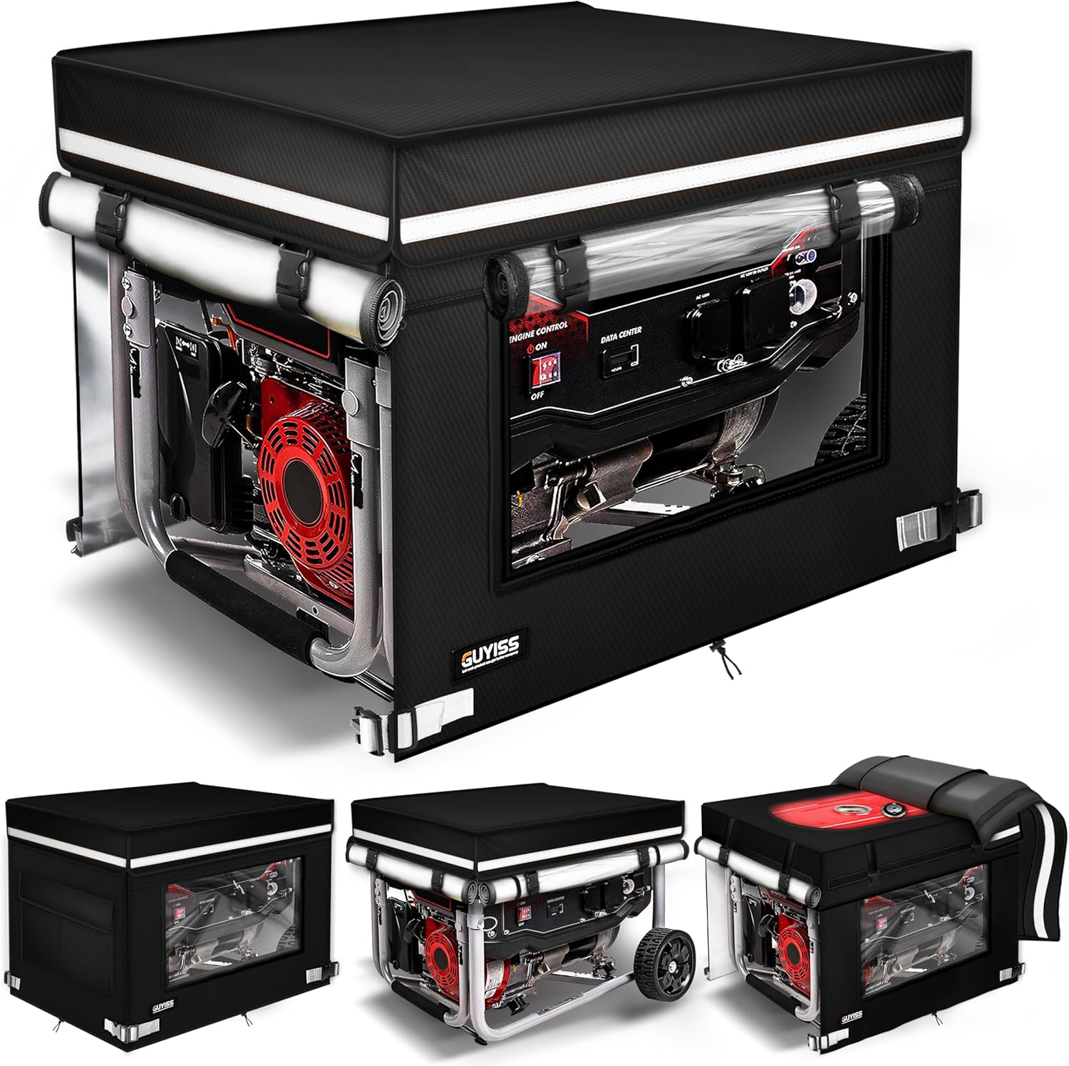 • Open Design Generator Cover: The GUYISS generator cover has an open design with the top opening for easy fuel addition. All sides open and roll up. Ensure ventilation and heat dissipation during generator operation. It is also easy to use the generator's operating buttons and link the power cord.