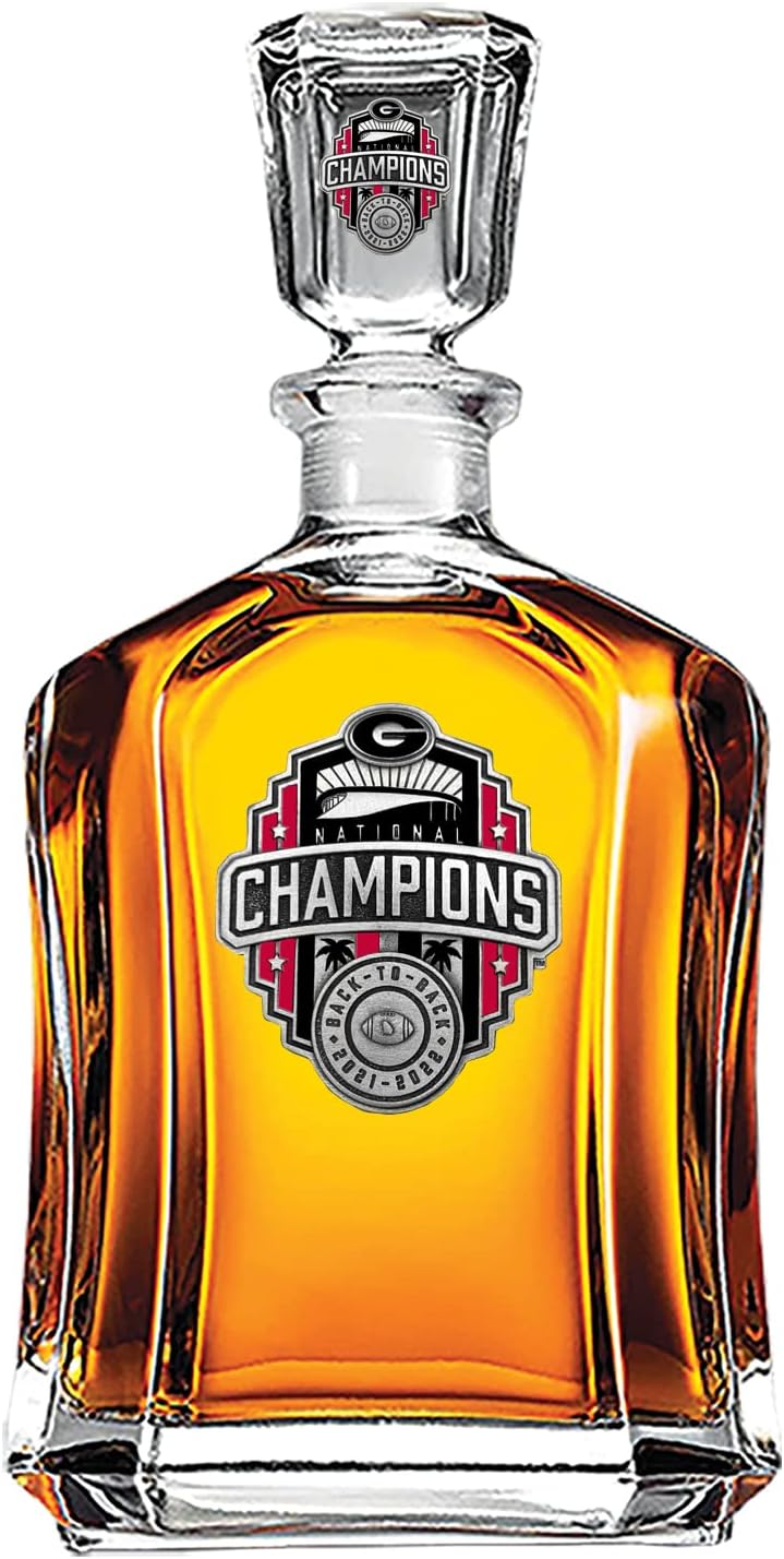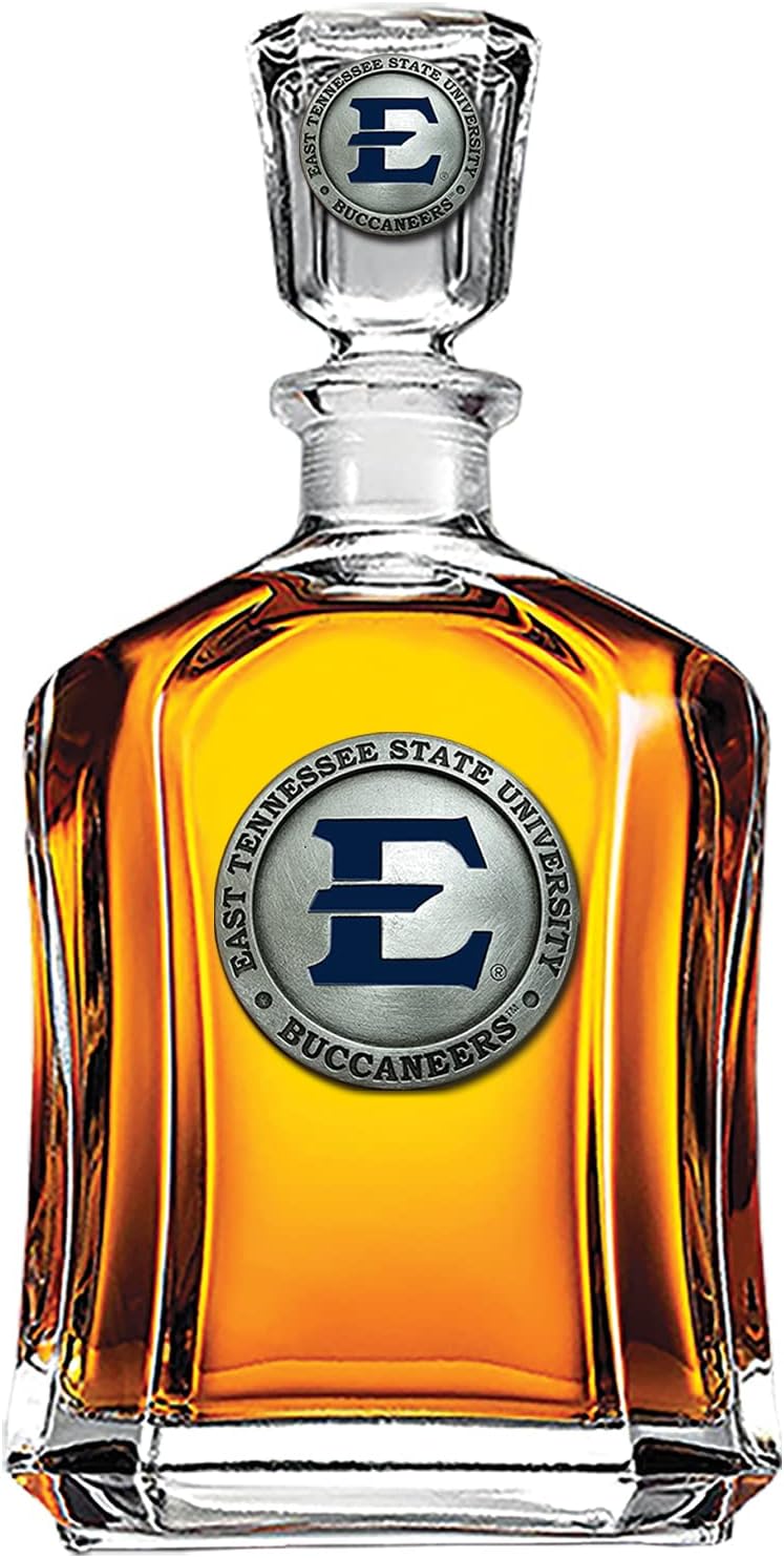 This 24-ounce glass decanter embellished with a hand-sculpted, highly detailed Fine Pewter casting and features hand-poured enamel coloring makes a great addition to any home bar. Ideal to showcase your favorite single-malt scotch, brandy or liqueur, this decanter is dishwasher safe.